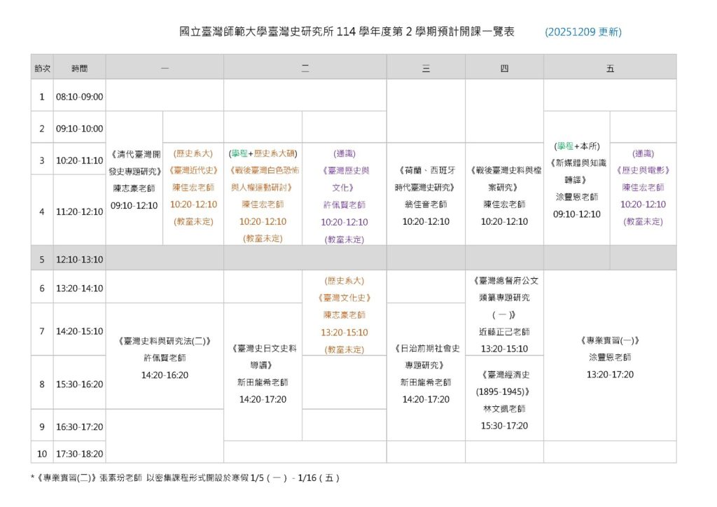【課務】114-2學期預定開設課程一覽表