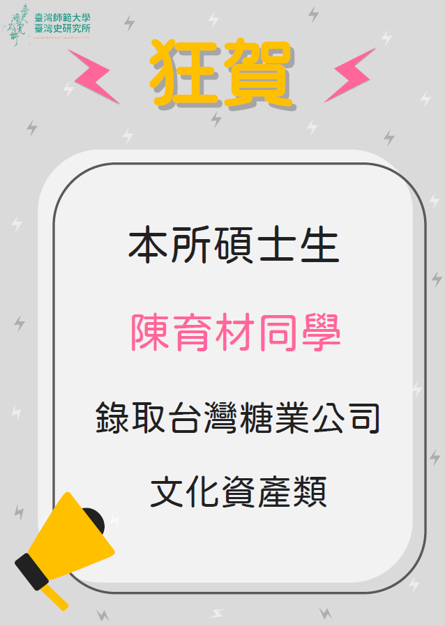 恭賀本所陳育材錄取台灣糖業公司文化資產類